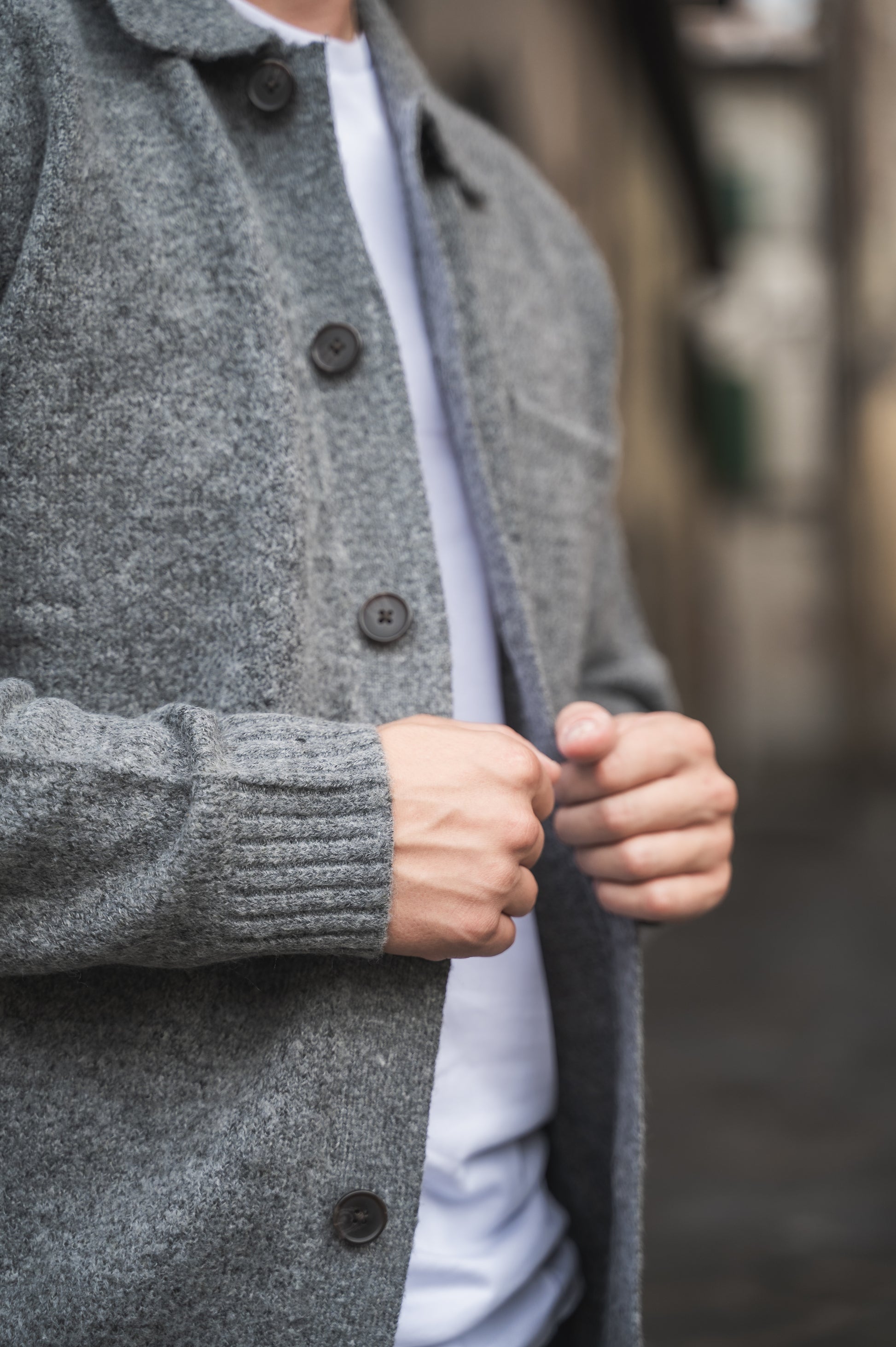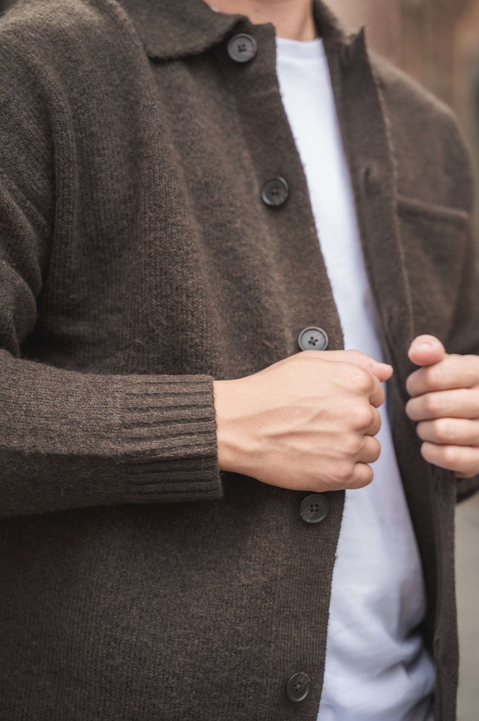 Cardigan con colletto e chiusura a bottoni,taschino lato cuore