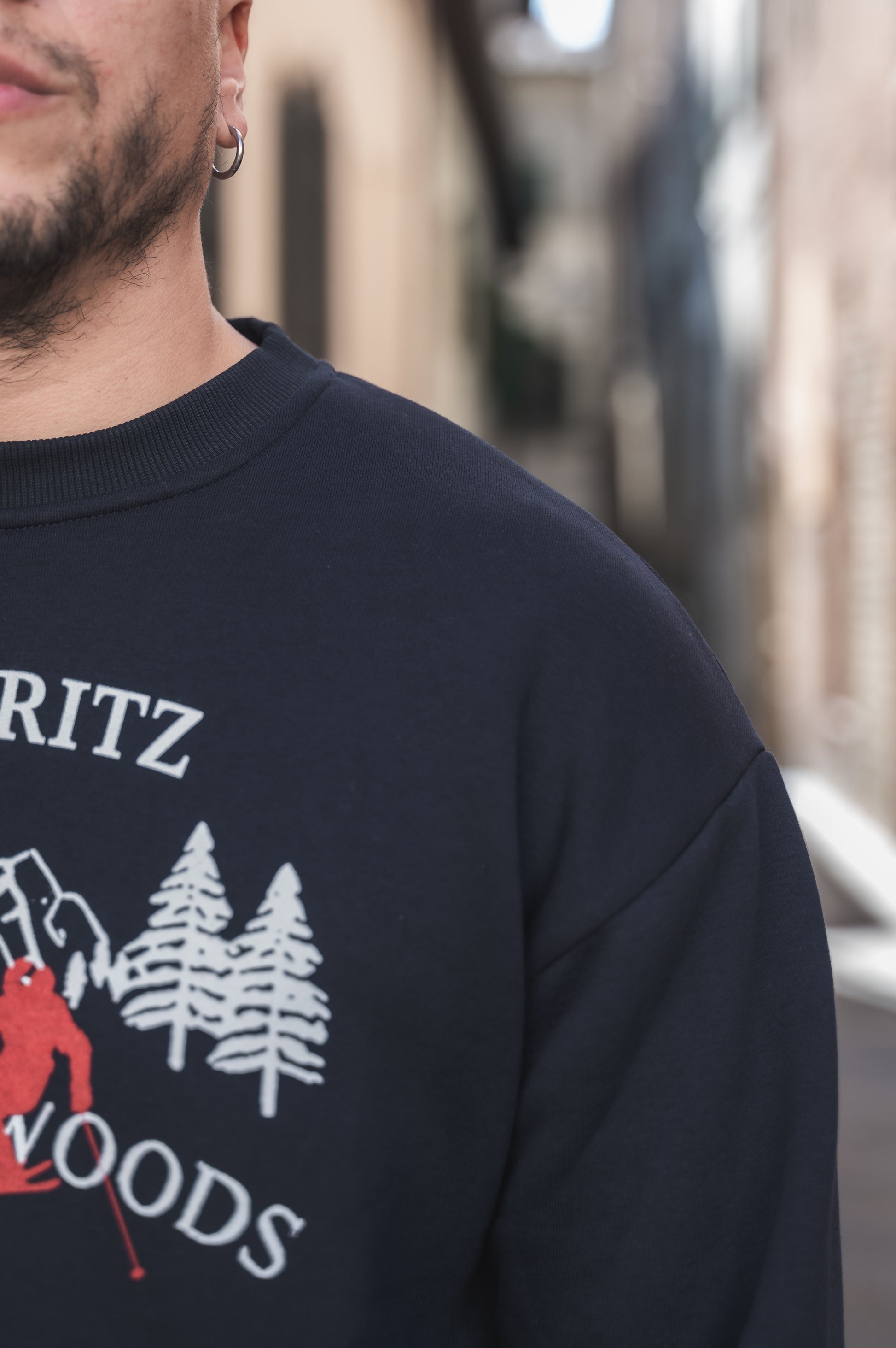 Felpa girocollo con polsini,stampa grande sul davanti