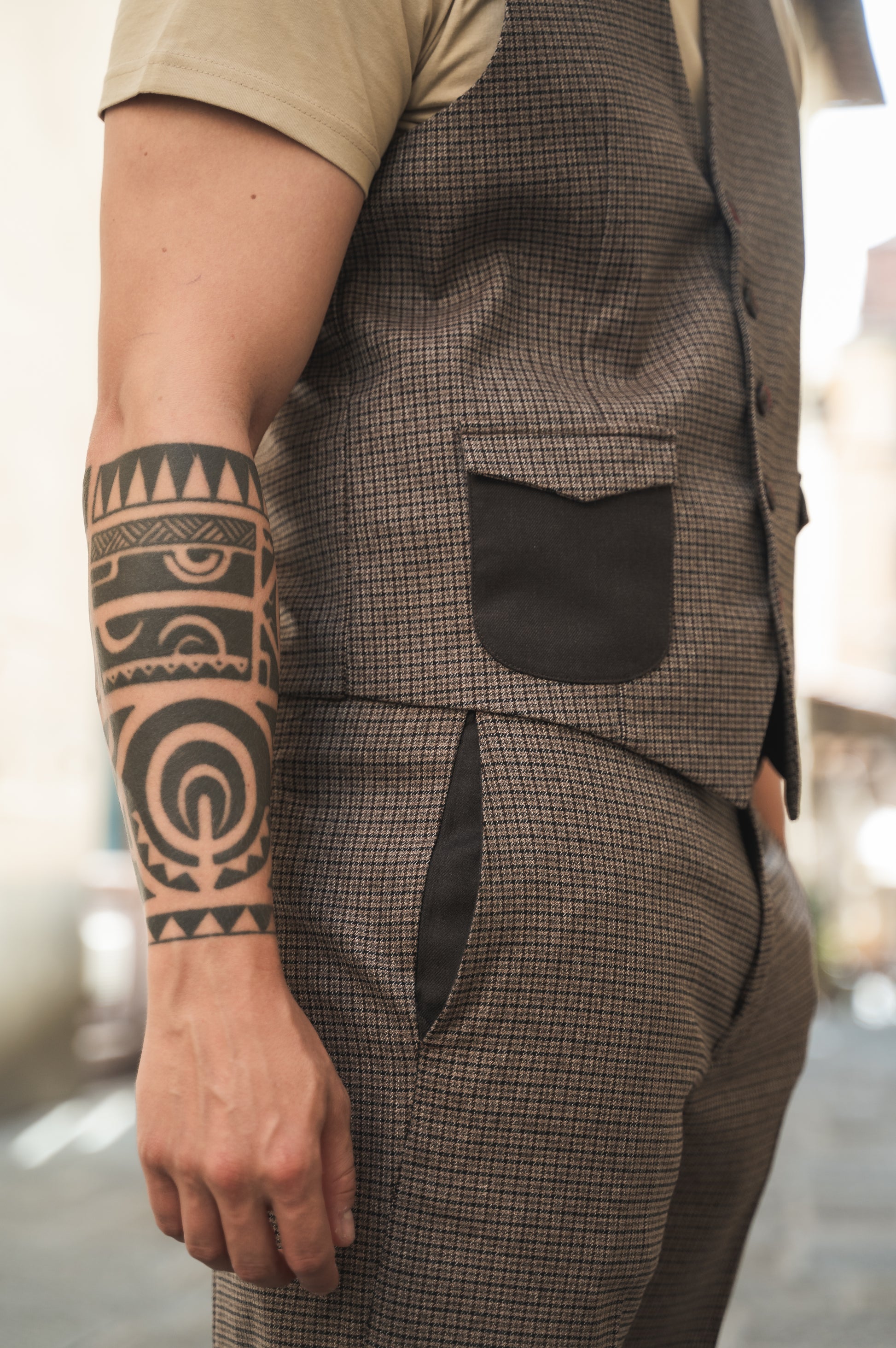 Gilet con tasca a toppa,fantasia quadri principe di Galles