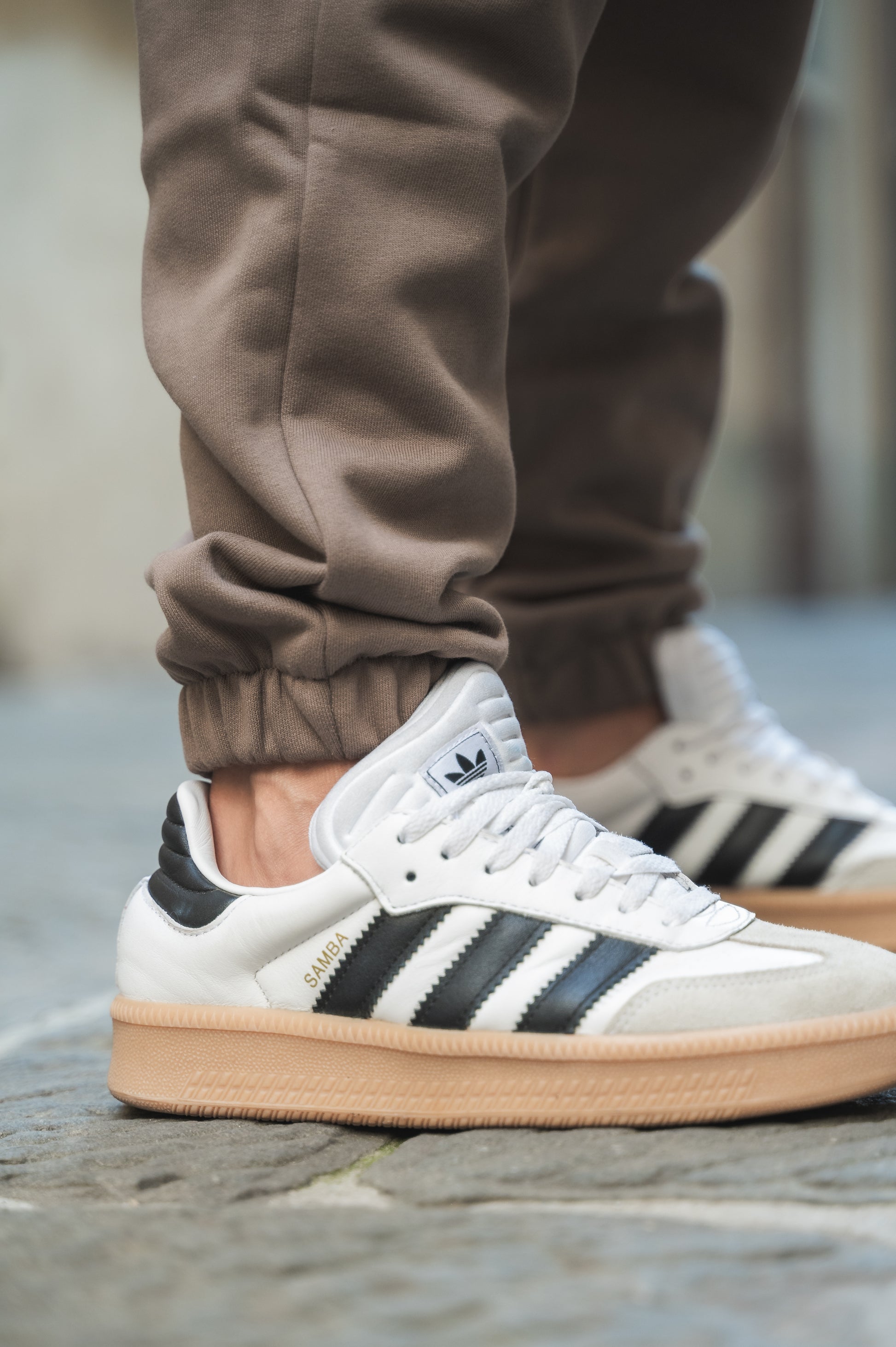 Pantalone in felpa con logo sulla coscia in rilievo,laccio in vita e polsino sulla caviglia .